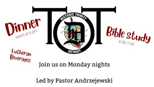 Join us on Monday nights for dinner, Lutheran beverages and an interesting discussion led by Pastor Andrzejewski.